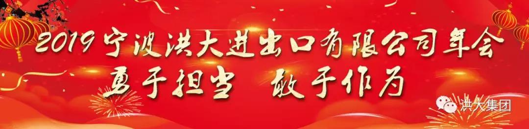 MORE1月18日,2019宁波洪大进出口有限公司年会在雷迪森酒店举办。冬日里久违的阳光让人们的心情变得格外明朗轻快。走进会场,巨幅LED显示屏上庄重热烈的主题画面,给人带来视觉上的震撼,画面下方“勇于担当,敢于进取”......